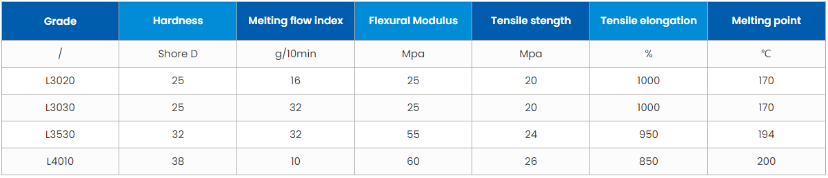KYLflex? TPC-ET/TPEE has good flexibility, high melt stability and low melt viscosity. It can be used to improve the impact strength (toughness) at high and low temperature , flexibility and blending compatibility of plastics. It is mainly used for modification TPE, POM, PET, PBT, PVC, etc.